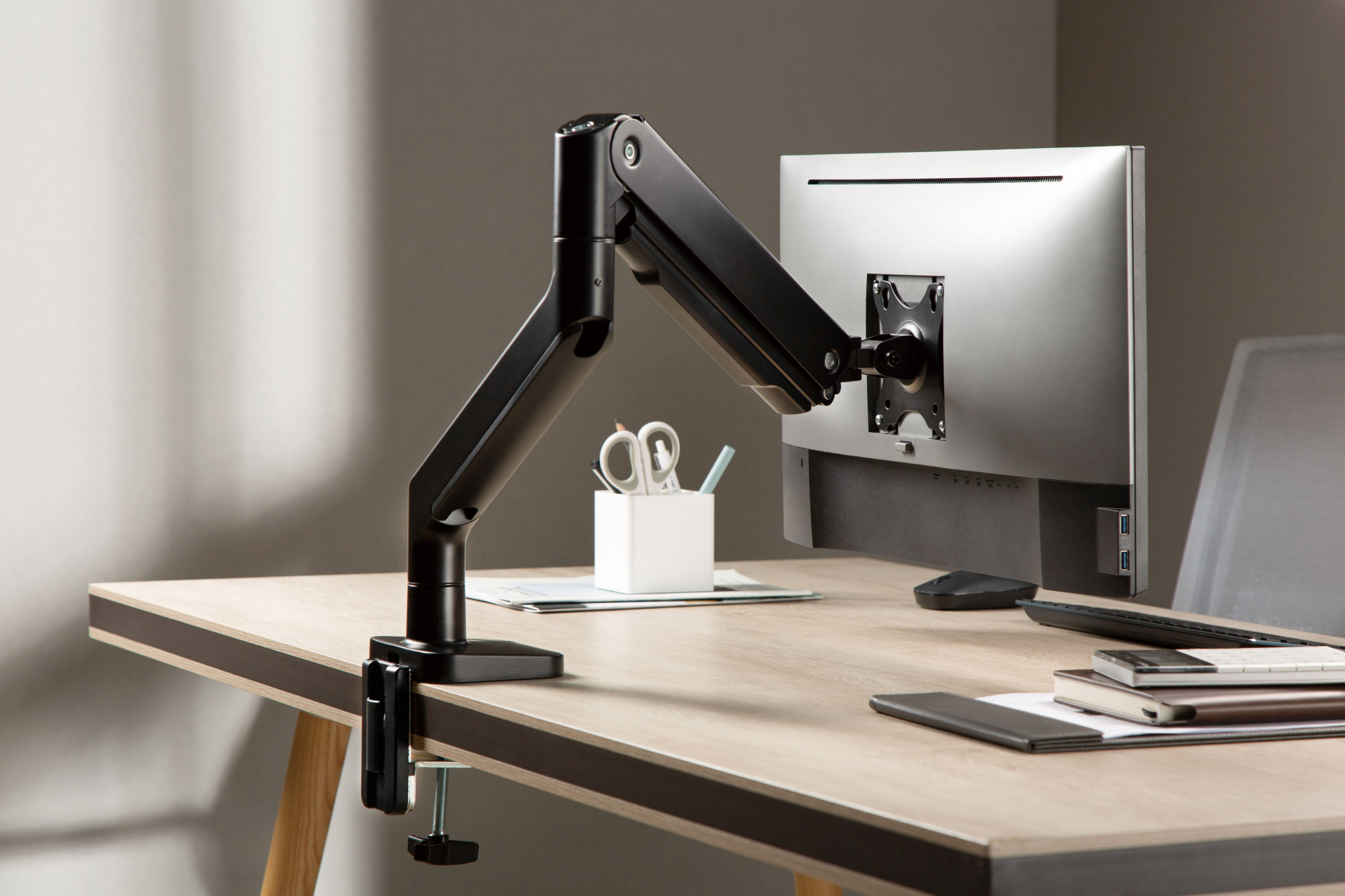 Кронштейн для мониторов Ultramounts UM735BL черный/серый 17-27 макс.7кг крепление к столешнице поворот и наклон