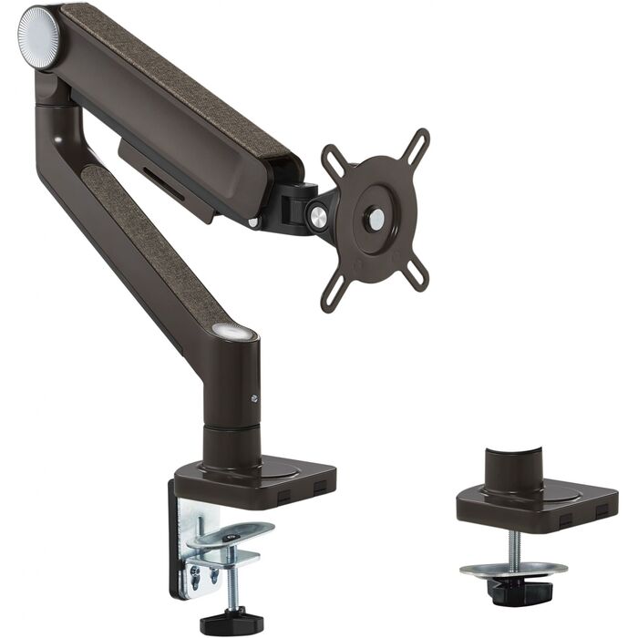Ultramounts UM732BR коричневый кронштейн для монитора с изящными элементами не только обеспечивает прочное крепление экрана, но и предлагает возможность без труда настраивать его положение, выбирая оптимальную высоту и угол наклона для наибольшего комфорта при использовании.