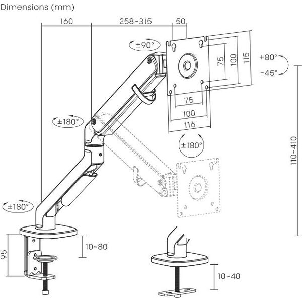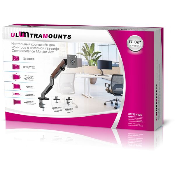 | Особенности | Настольный кронштейн для монитора с системой газ-лифт. Пружинный механизм позволяет легко перемещаться вверх и вниз. |