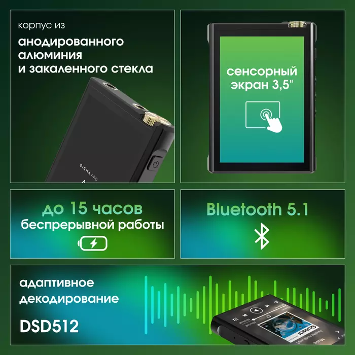 Характеристики Основные характеристики Плеер Hi-Fi Да Носитель информации flash Максимальный объем карты памяти 256 ГБ Операционная...