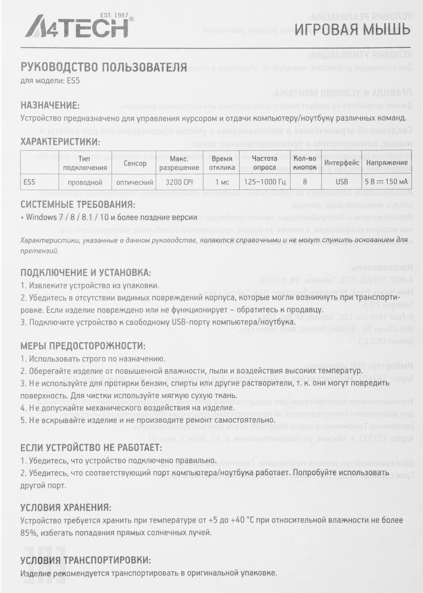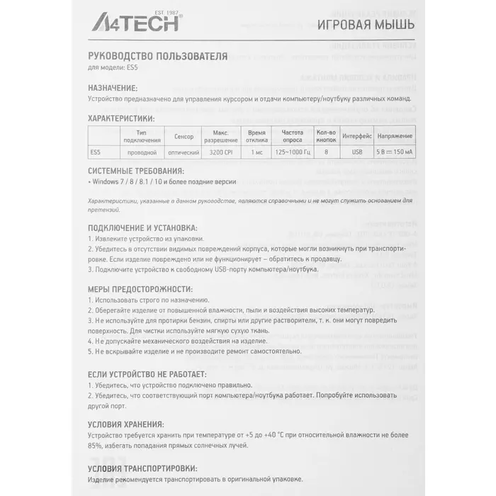 Описание A4-Tech Bloody ES5