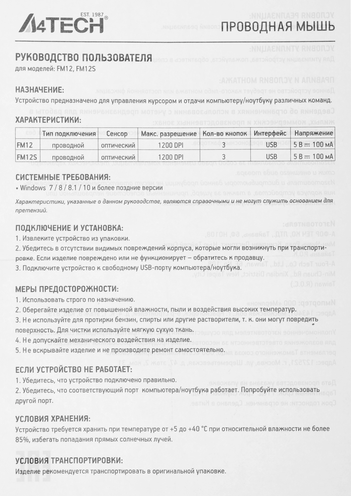Описание A4-Tech Fstyler FM12S BLACK