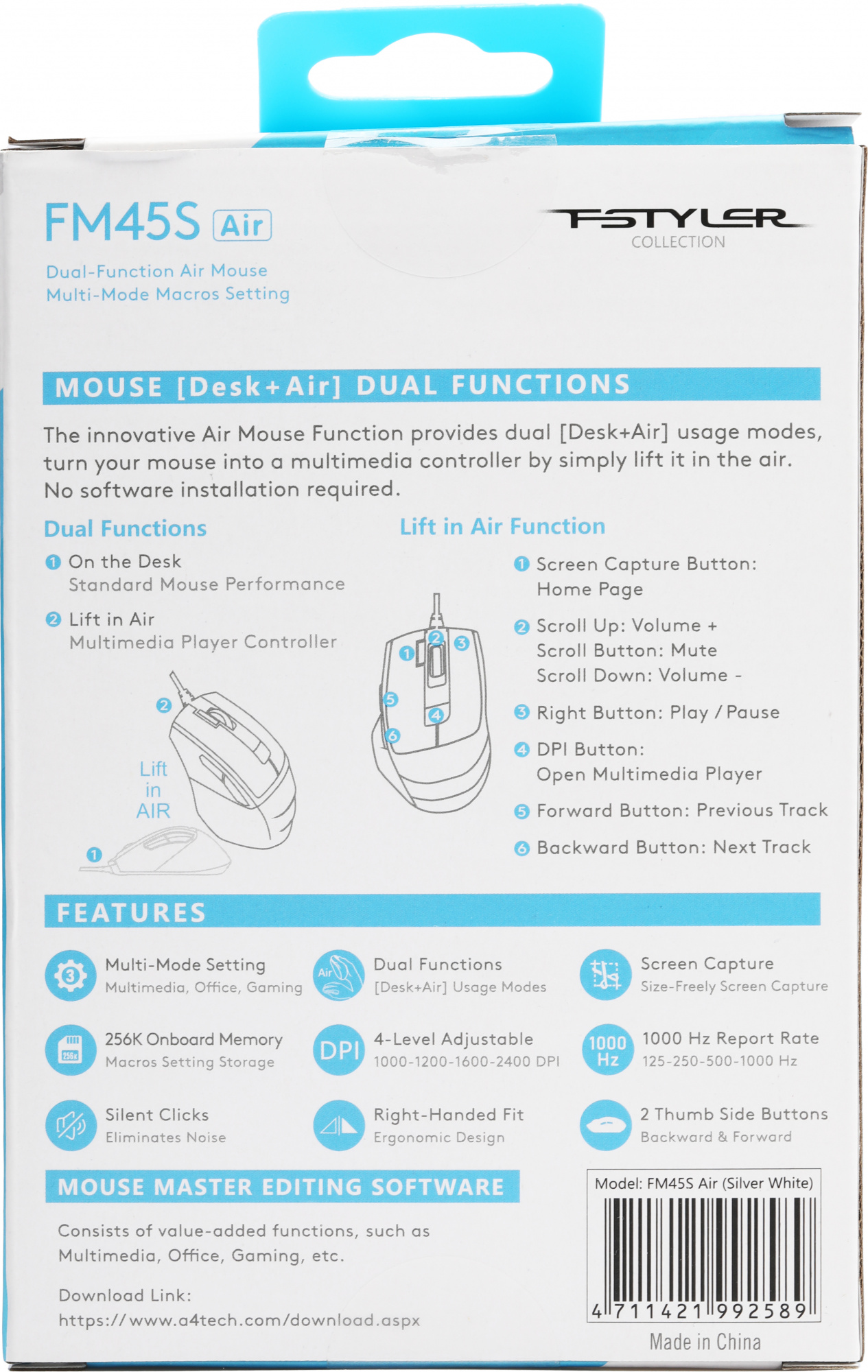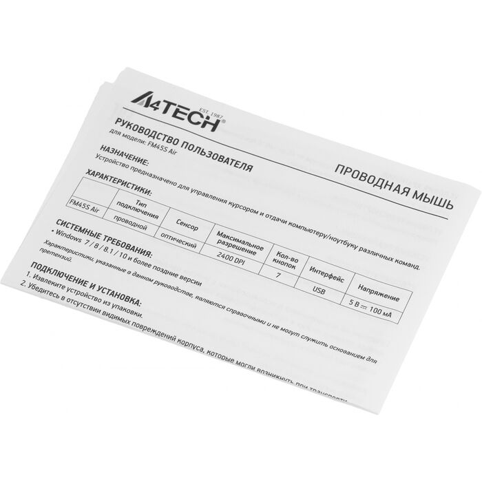 Описание A4-Tech Fstyler FM45S Air [FM45S AIR USB (SILVER WHITE)]