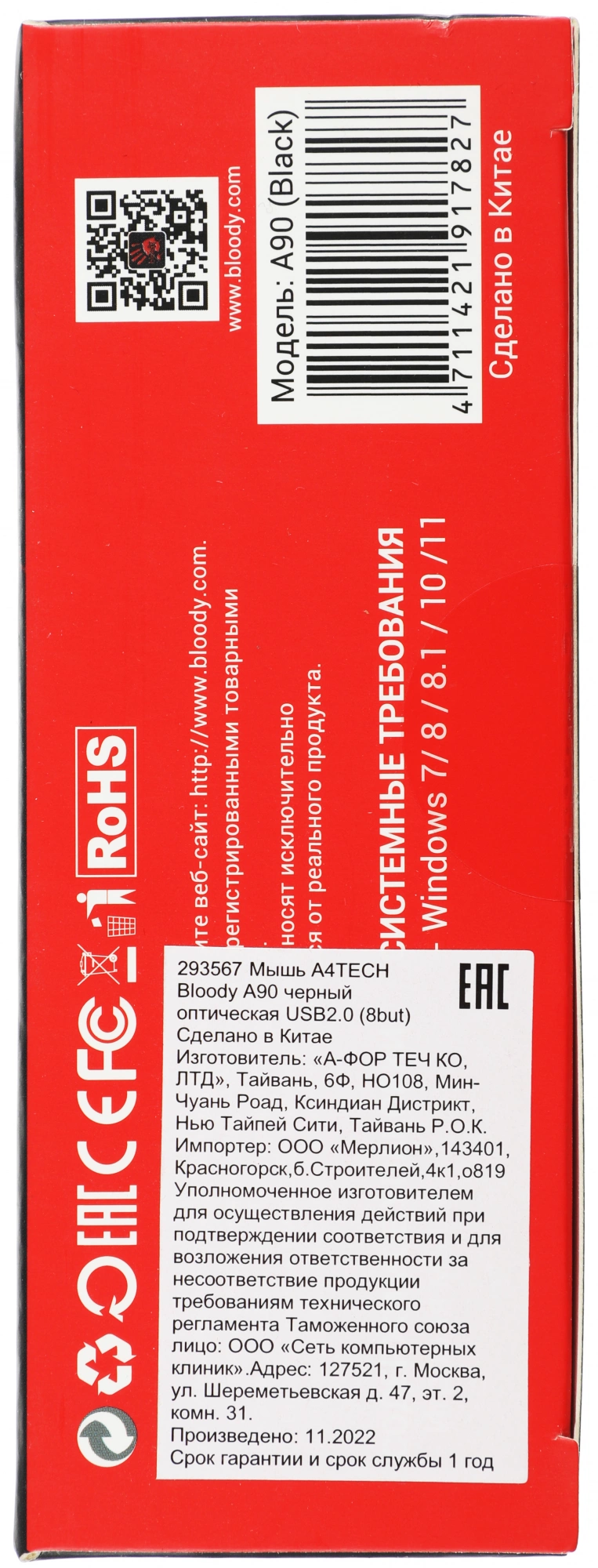 Описание A4-Tech Мышь A4Tech Bloody A90 черный оптическая 6200dpi USB 8but [A90]