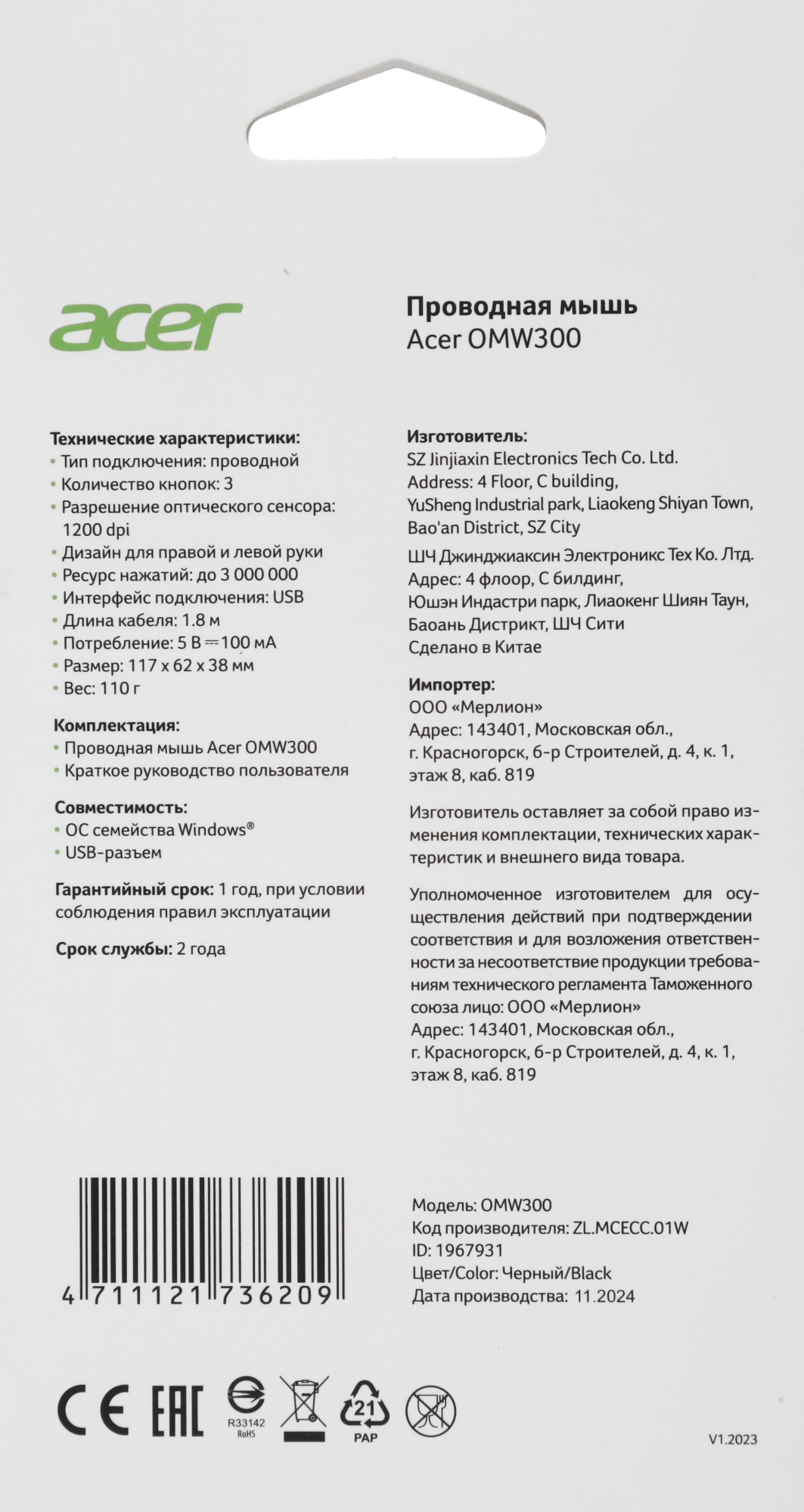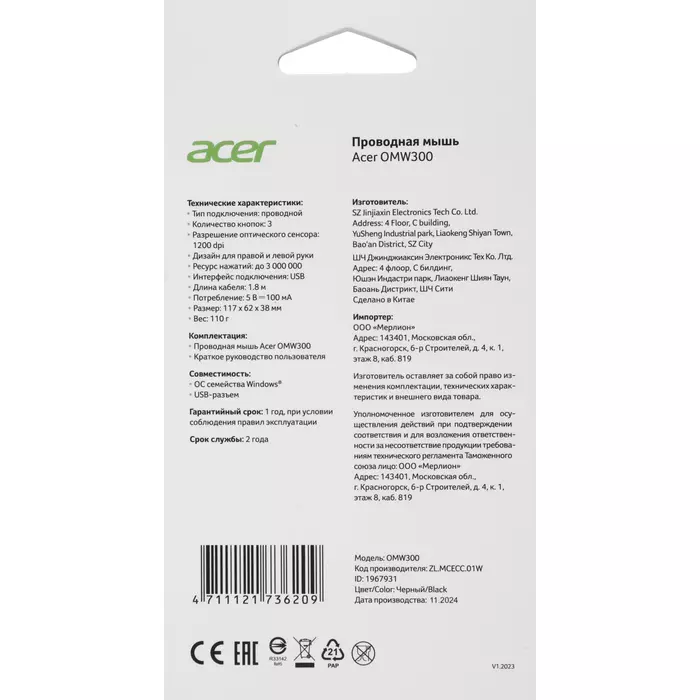 Наличие товара Acer OMW300 [ZL.MCECC.01W]