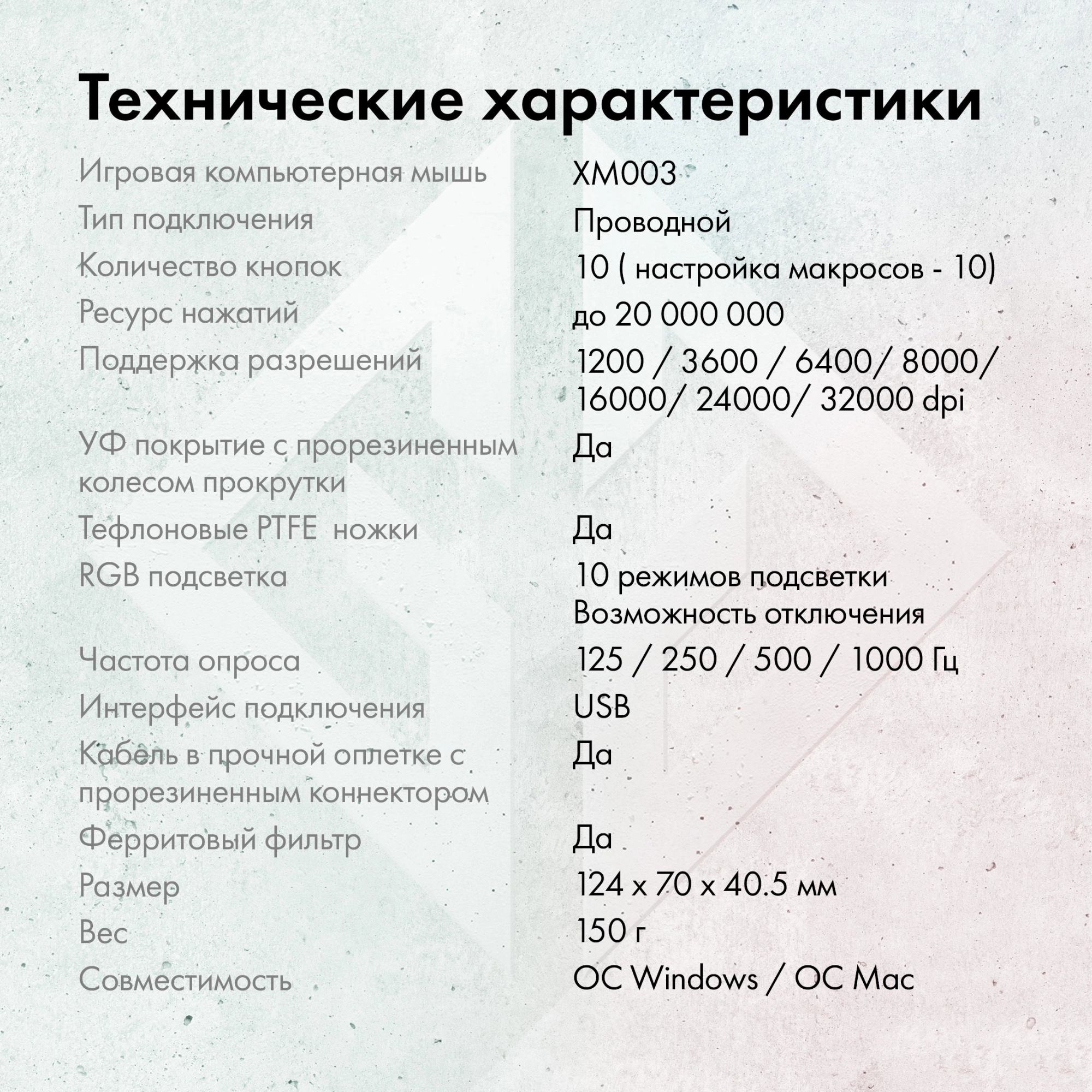 Характеристики Основные характеристики Время отклика 1 мс Технология оптическая Подключение по USB Да Частота опроса USB порта...
