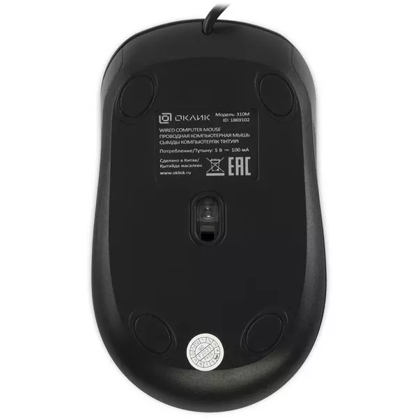 Мышь Oklick 310M черный/красный оптическая 2400dpi USB для ноутбука 4but [1869102]