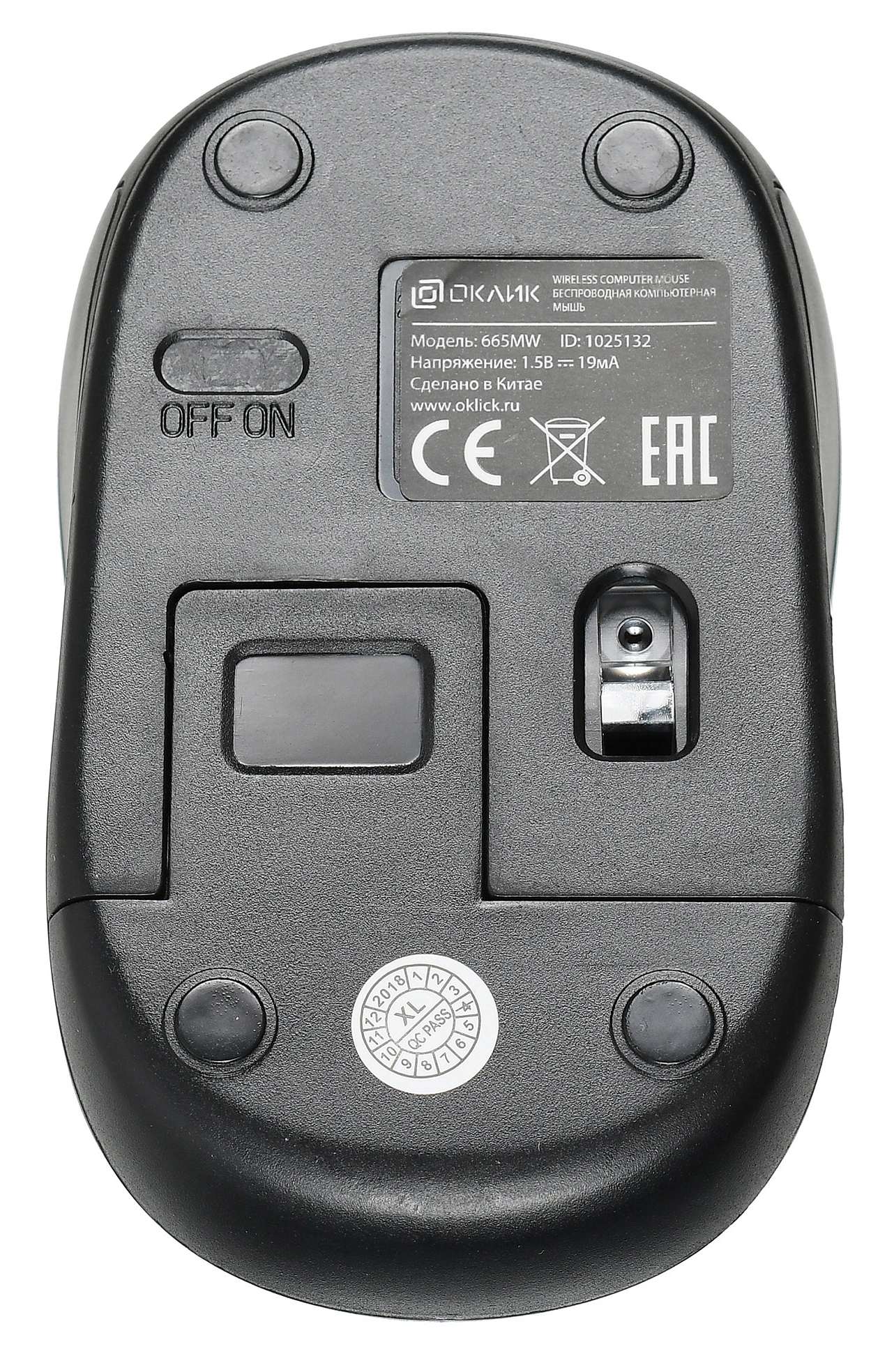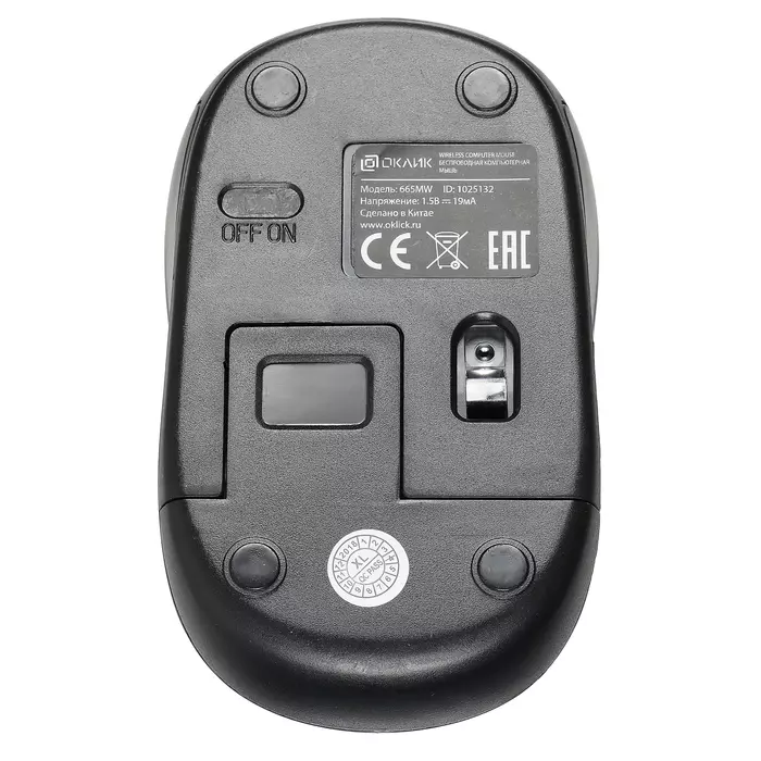 На Oklick 665MW расположены 3 кнопки, в том числе кнопка выключения мыши, которая выручает при переноске или сохранении заряда устройства.