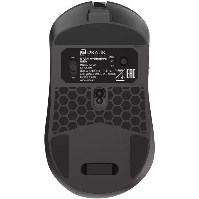 | Особенности | Беспроводная игровая мышь, с возможностью подключения по Bluetooth, радиоканалу (USB-донгл) и кабелем. Отключаемая RGB-подсветка и тефлоновые накладки |