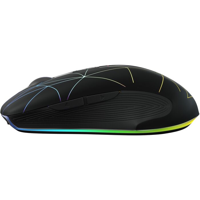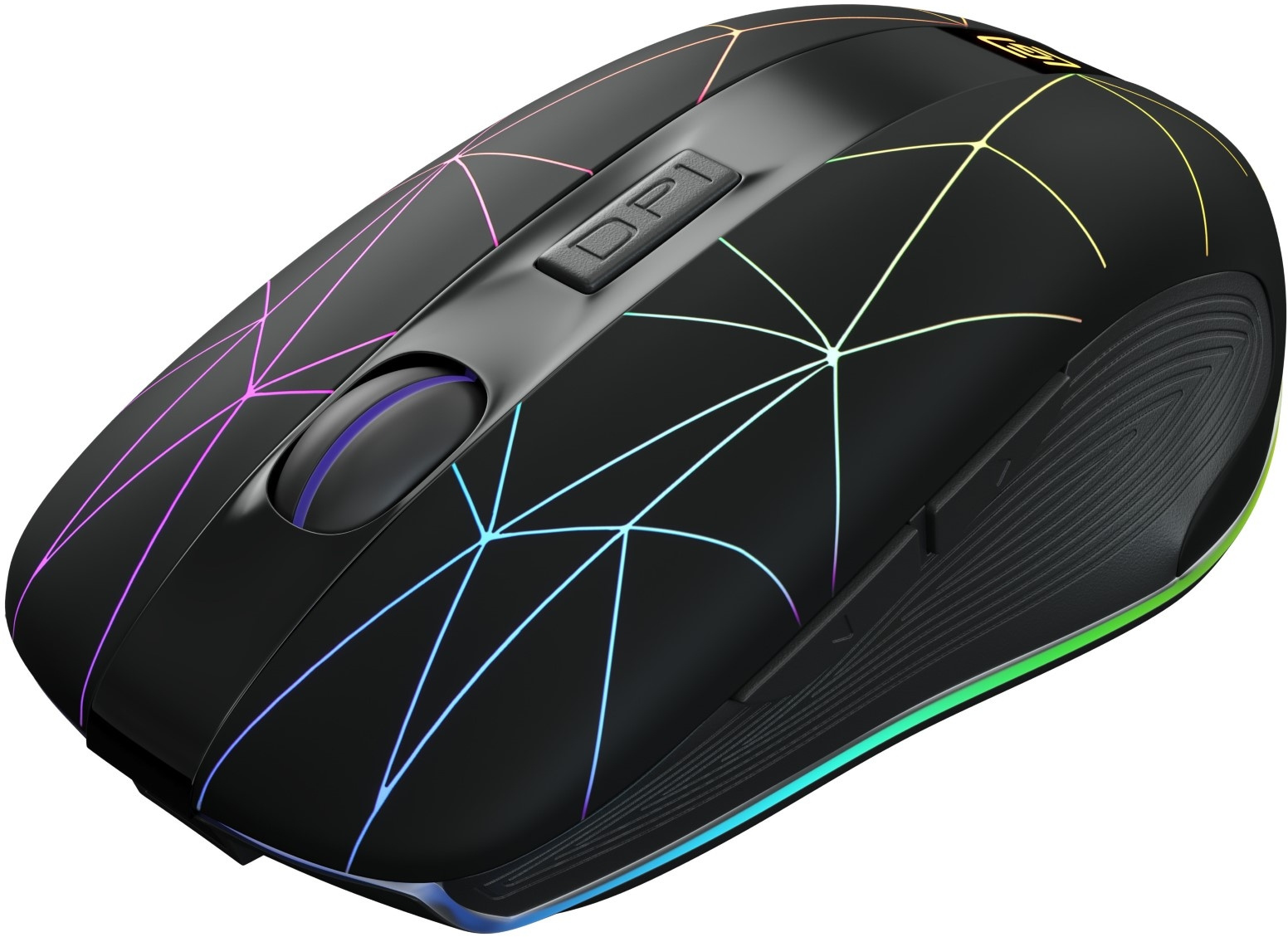 | Особенности | Беспроводная компьютерная мышь. Встроенный Li-Ion аккумулятор на 400mAh,тефлоновые ножки для лучшего скольжения, многоцветная подсветка (с возможностью отключения), настройка оптимального разрешения. Специальное ПО расширяющее функциональные возможности мышки. |