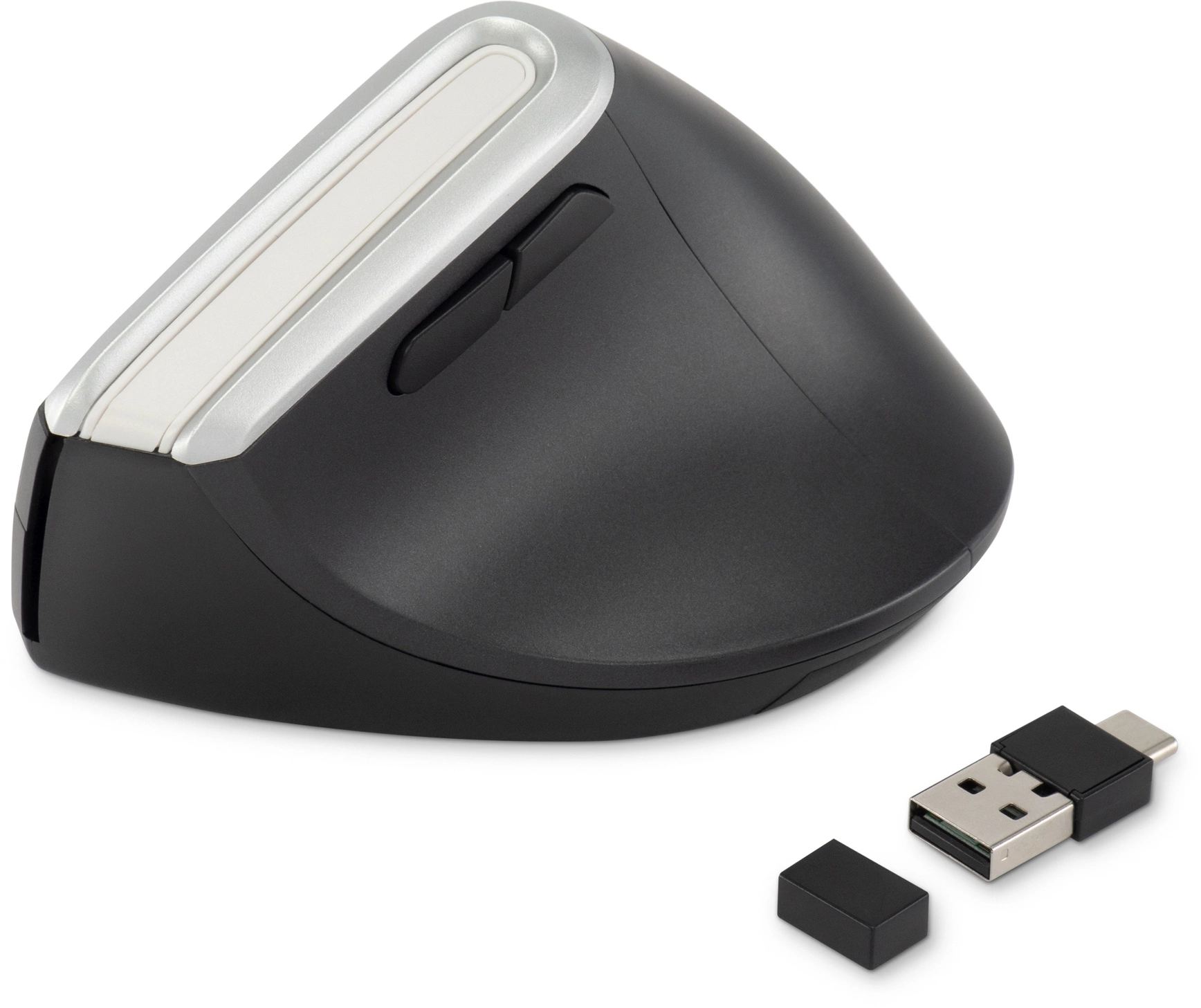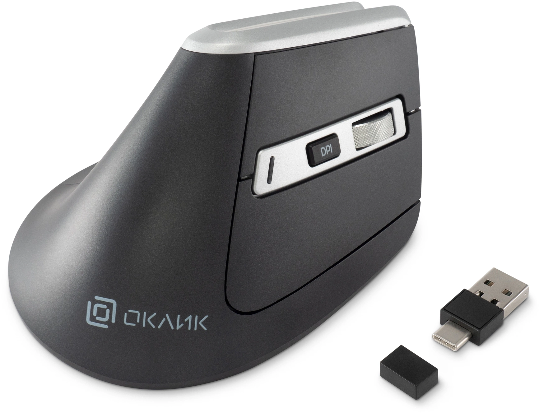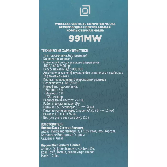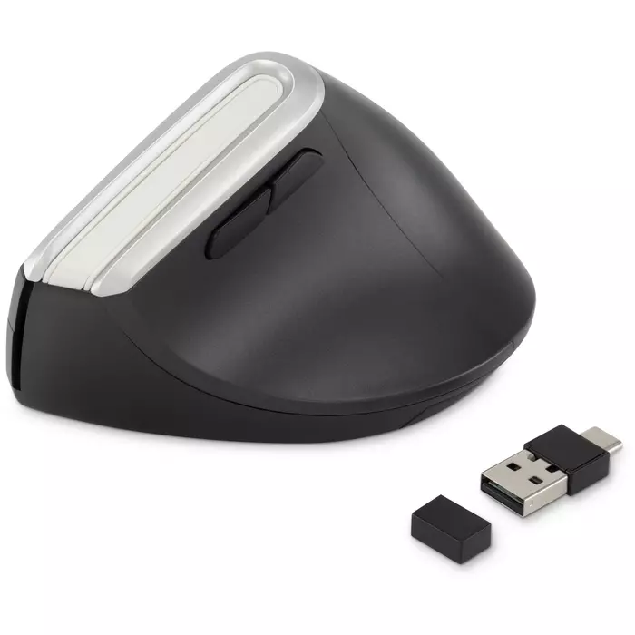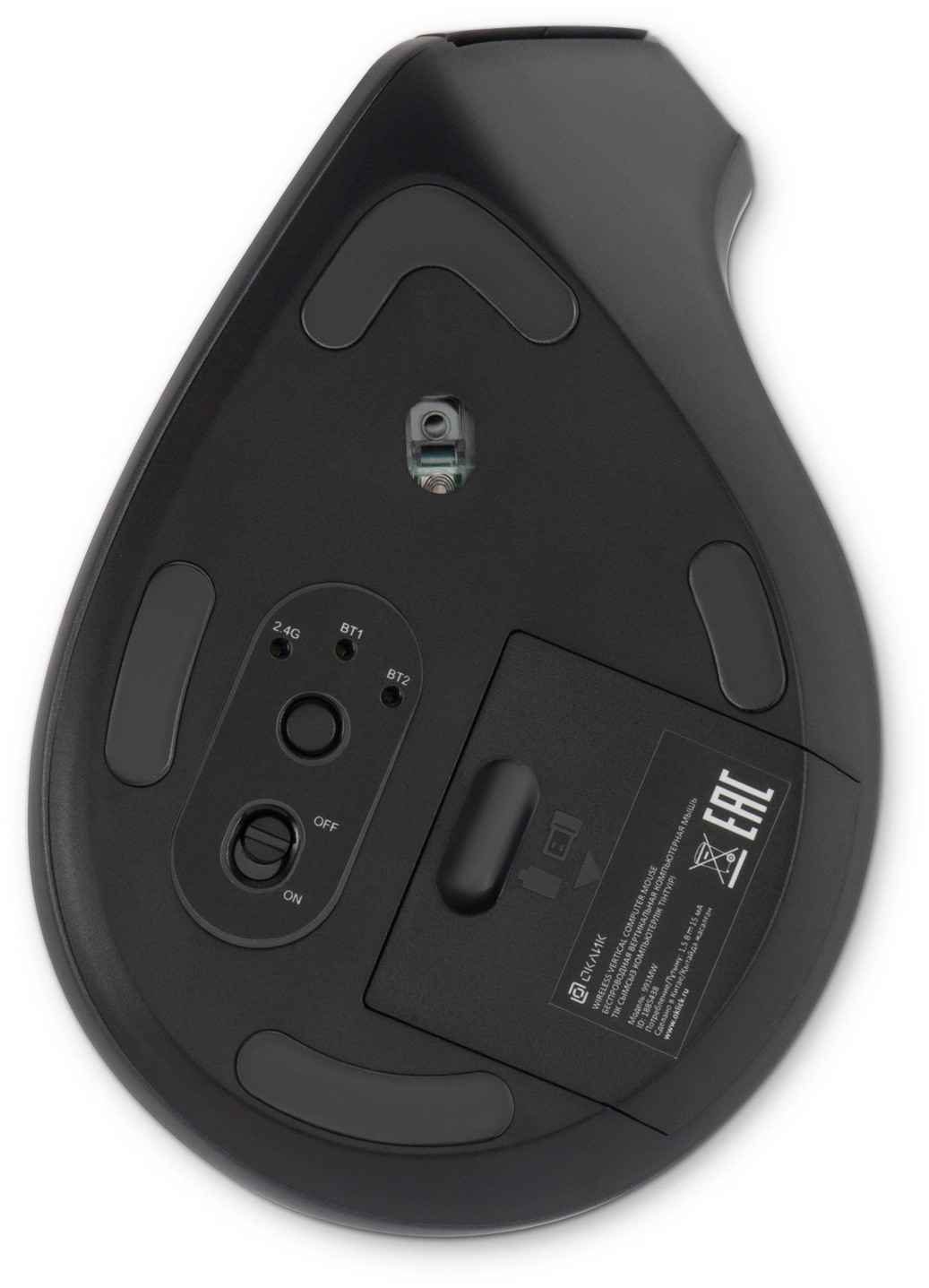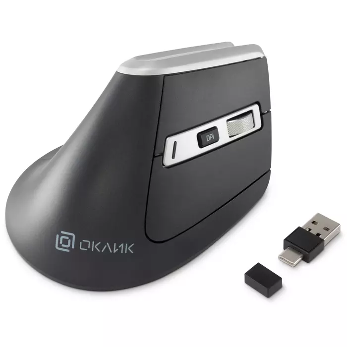 | Особенности | Удобная вертикальная эргономичная беспроводная мышь. Металлическое колесо, тефлоновые ножки, поддержка трех устройств, бесшумный клик. Универсальный ресивер USB A/C, поддержка Bluetooth. Кнопка вкл/выкл, кнопка переключения между устройствами на нижней поверхности мышки |