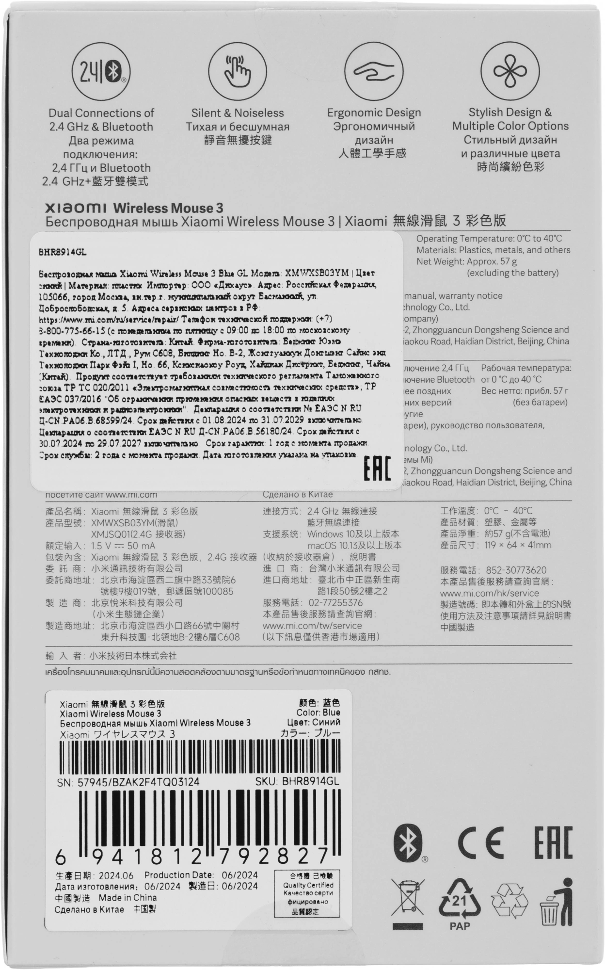 Описание Xiaomi Wireless Mouse 3 [BHR8914GL]