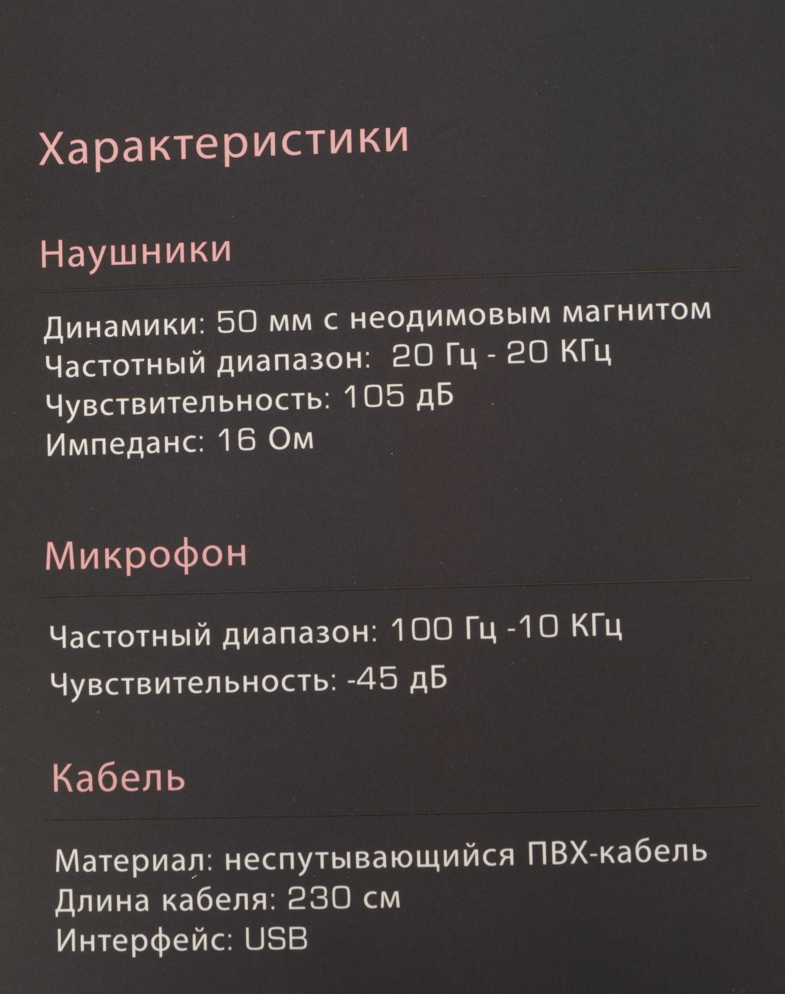 | Тип соединения гарнитуры | проводные USB |
