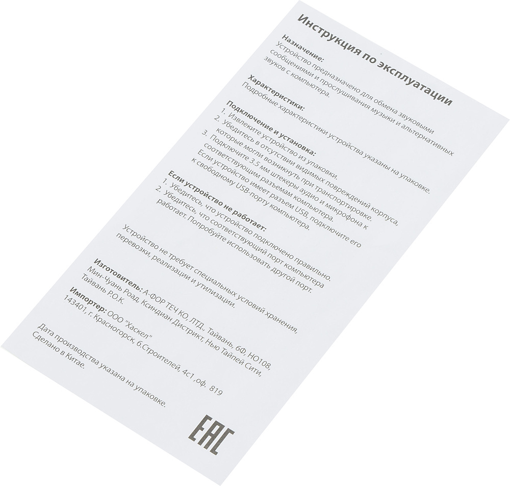 | Крепление микрофона | всенаправленный |