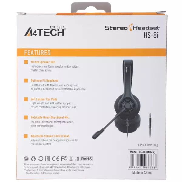 Наушники с микрофоном A4-Tech HS-8I черный 1.8м накладные оголовье