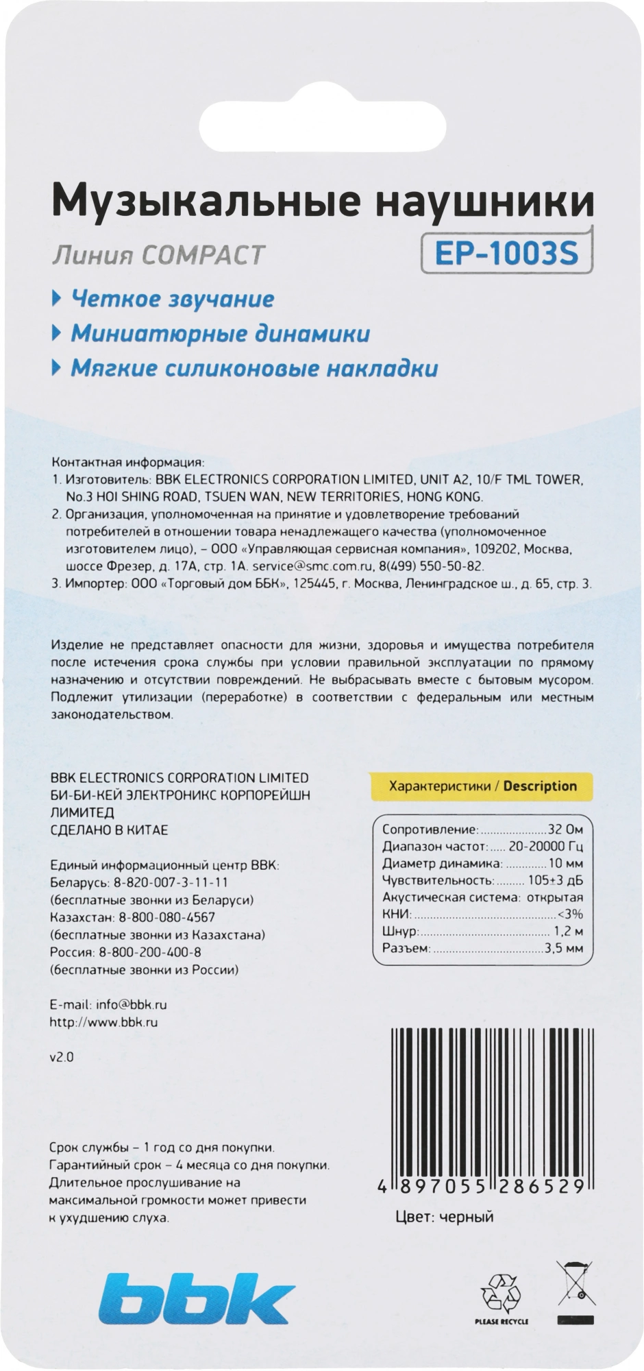 Описание BBK EP-1003S (B)