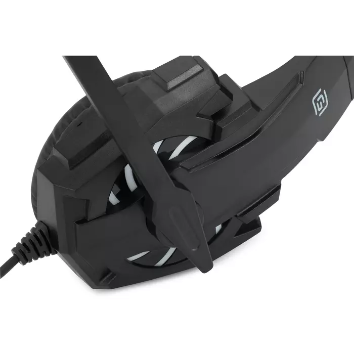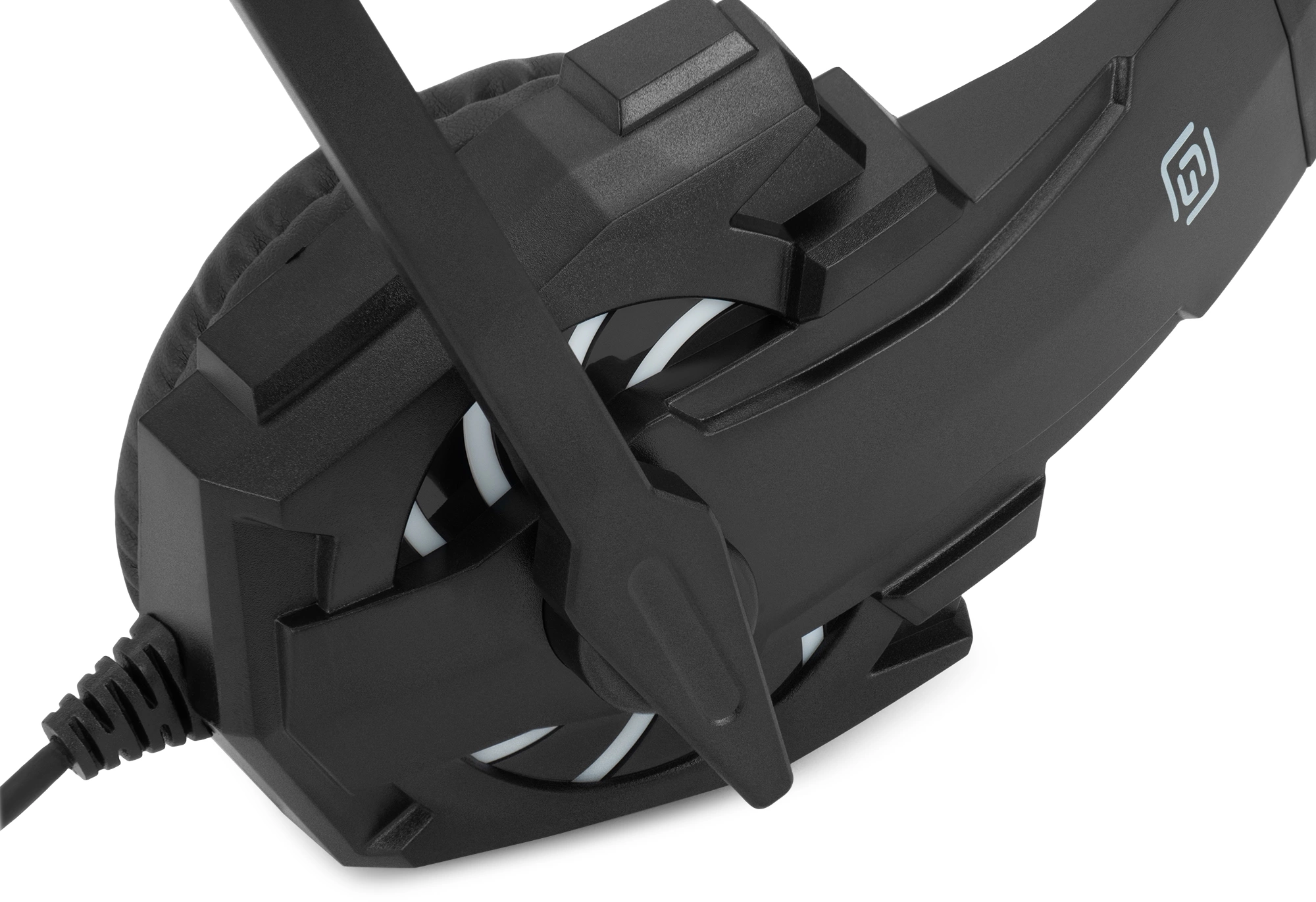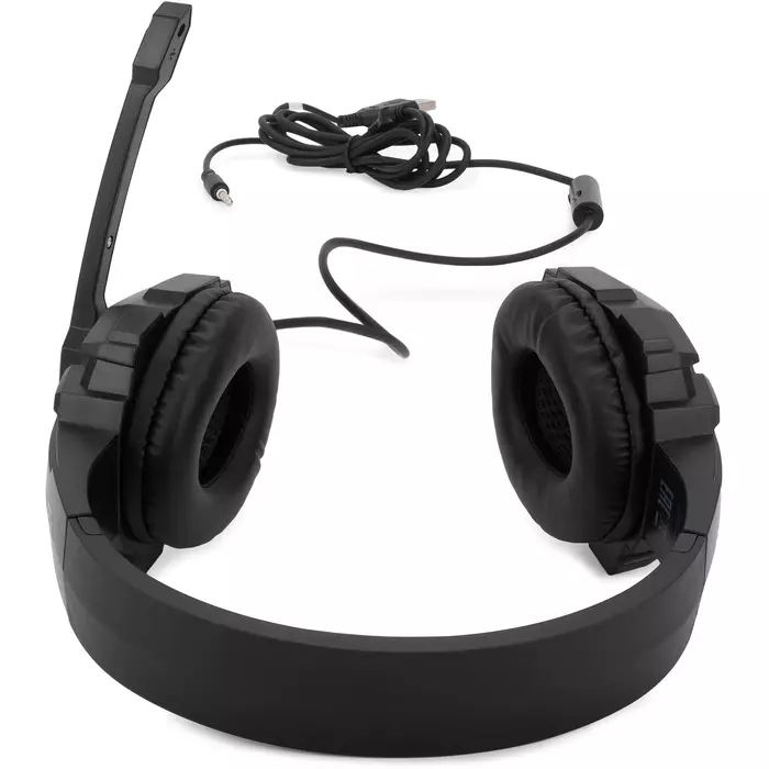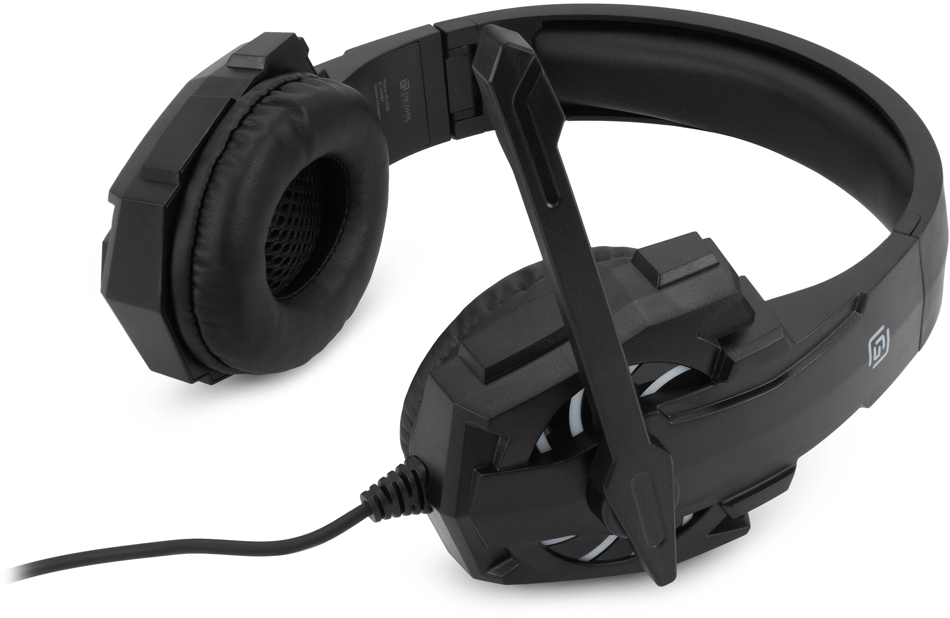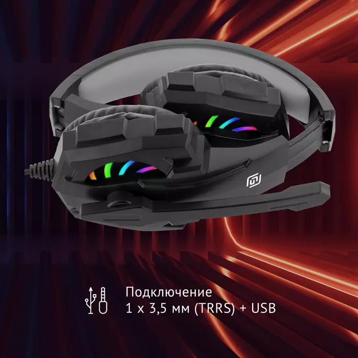 | Особенности | Легкая игровая гарнитура с многоцветной динамической подсветкой. Динамики 40 мм. Складная конструкция обеспечивает компактность при перевозке. Поворотный микрофон можно поднять если не нужно общение. Длинный провод с регуляторм громкости и включением/выключением микрофона. |