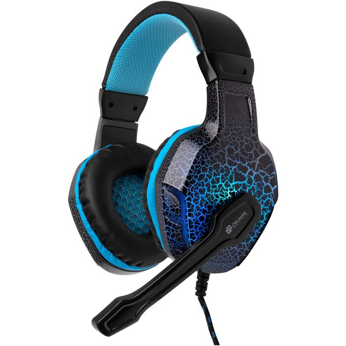 | Особенности | Стильная игровая гарнитура с многоцветной подсветкой, поворотный микрофон, усиленный плетеный провод, управление звуком на проводе |