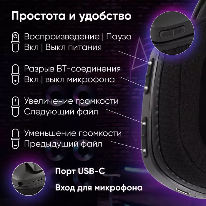 | Дополнительно в комплекте | USB-ресивер 2,4 ГГц, кабель USB-A - USB-C (зарядка + передача аудио) |
