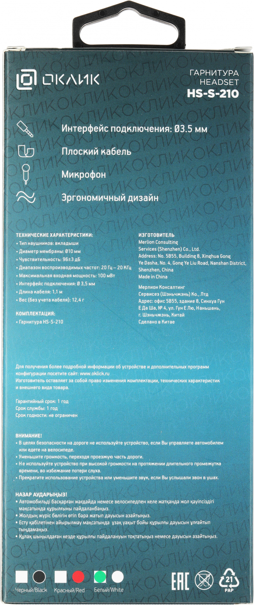 Наличие товара Oklick HS-S-210 [D1W]