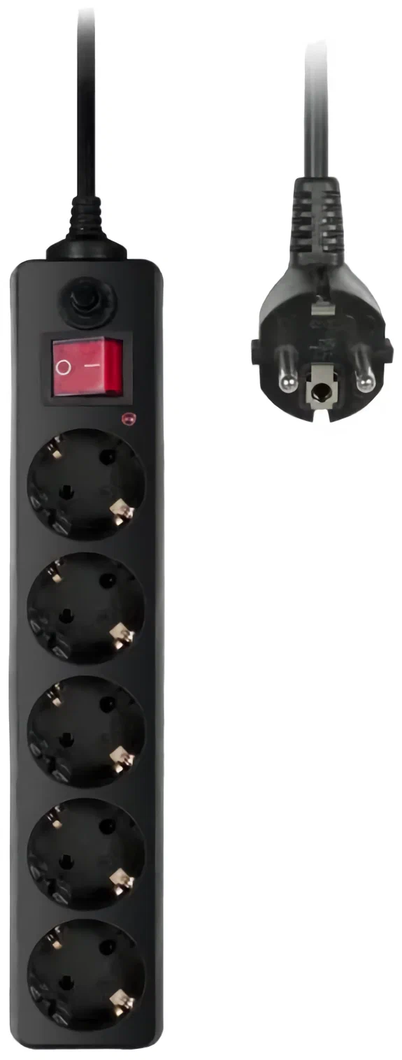 Удлинитель имеет 5 розеток, что позволяет одновременно подключить несколько устройств. Каждая розетка оборудована защитой от перегрузки, что гарантирует безопасное использование даже при подключении мощных приборов.