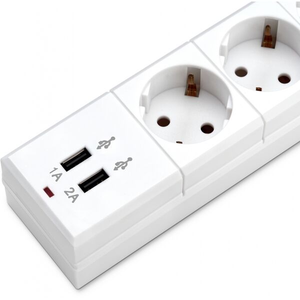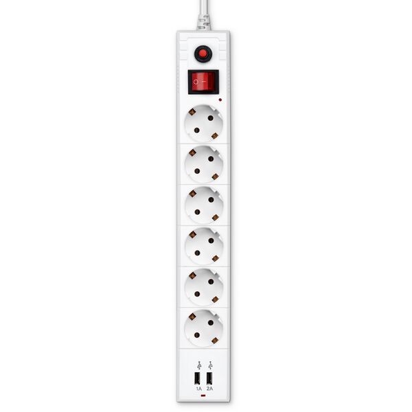 Сетевой фильтр BURO BU-SP1.8_USB_2A-W 1.8м (6 розеток) белый (коробка)
