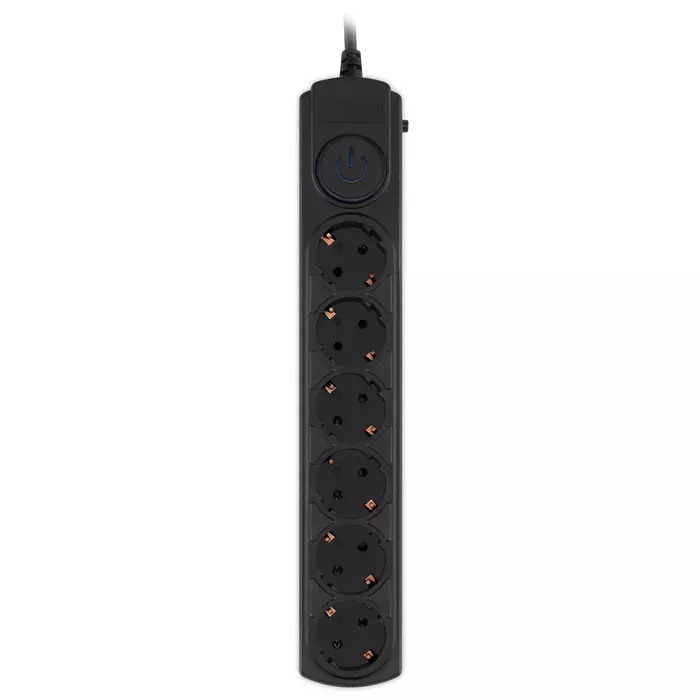 | Особенности | 6 евророзеток с заземлением. Входная вилка Schuko. Защита от перегрузки. Защита от импульсов высокого напряжения. Защита от перетирания провода в месте входа в корпус фильтра. Ударопрочный негорючий корпус. Кнопка питания с индикатором сети. Отверстия на корпусе сзади для удобного монтажа на стену. |