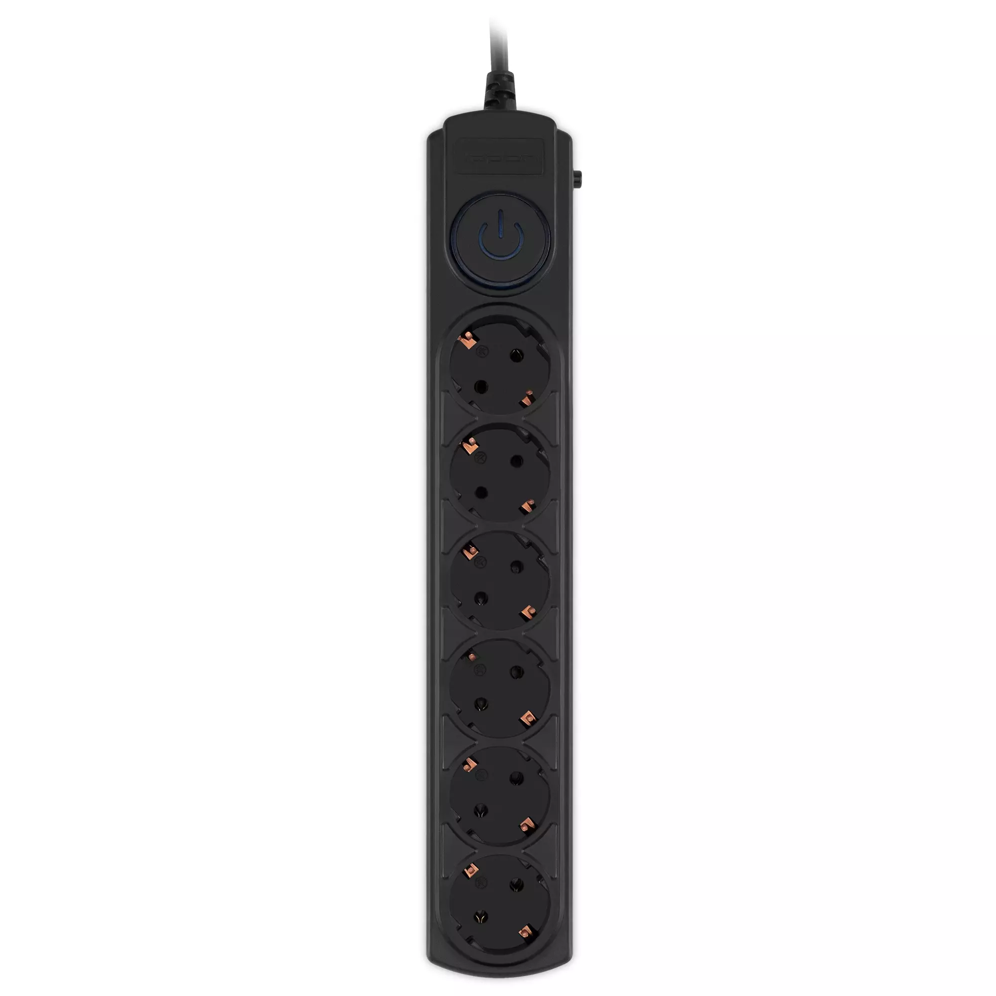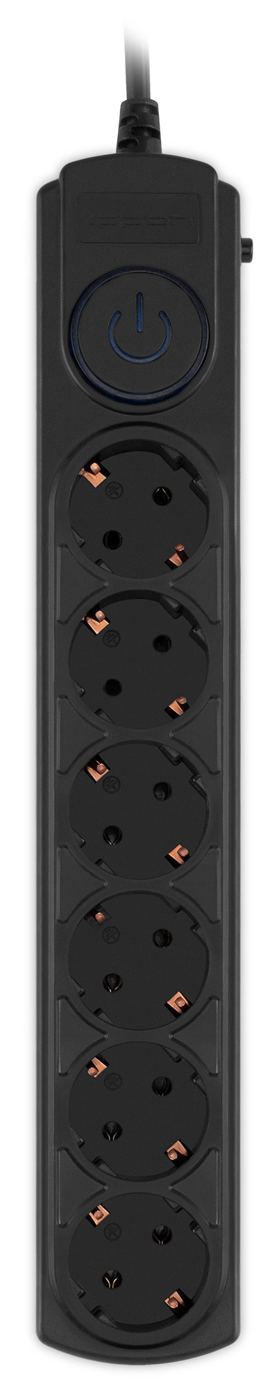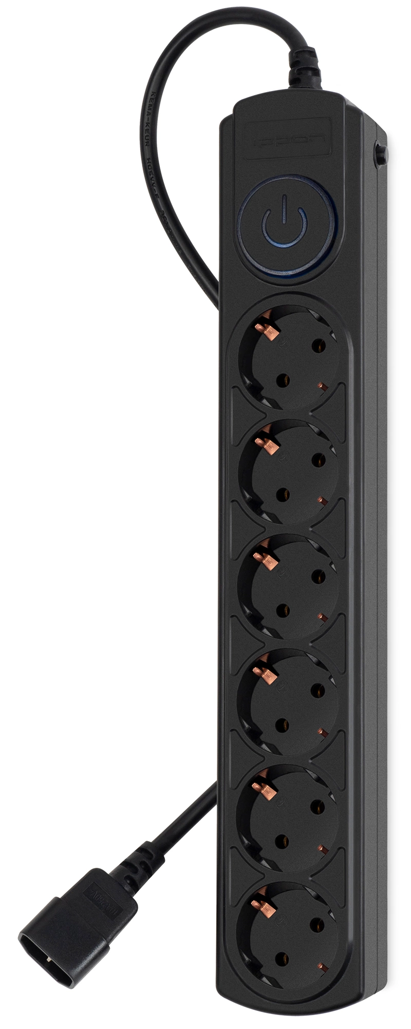 | Особенности | 6 евророзеток с заземлением. Входная вилка IEC 320 (для подключения к ИБП). Защита от перегрузки. Защита от импульсов высокого напряжения. Защита от перетирания провода в месте входа в корпус фильтра. Ударопрочный негорючий корпус. Кнопка питания с индикатором сети. |