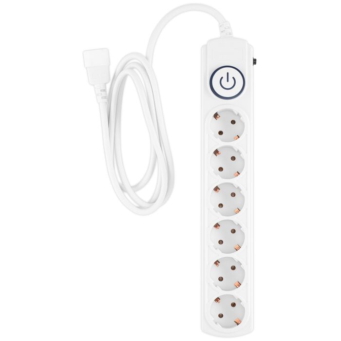 | Особенности | 6 евророзеток с заземлением. Входная вилка IEC 320 (для подключения к ИБП). Защита от перегрузки. Защита от импульсов высокого напряжения. Защита от перетирания провода в месте входа в корпус фильтра. Ударопрочный негорючий корпус. Кнопка питания с индикатором сети. |