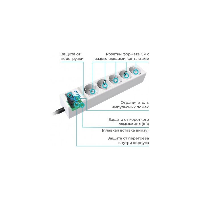 | Особенности | Розетка стандарта GP - оригинальной конструкции, которая позволяет подключить к 5 выходным розеткам до 10 утройств одновременно. |