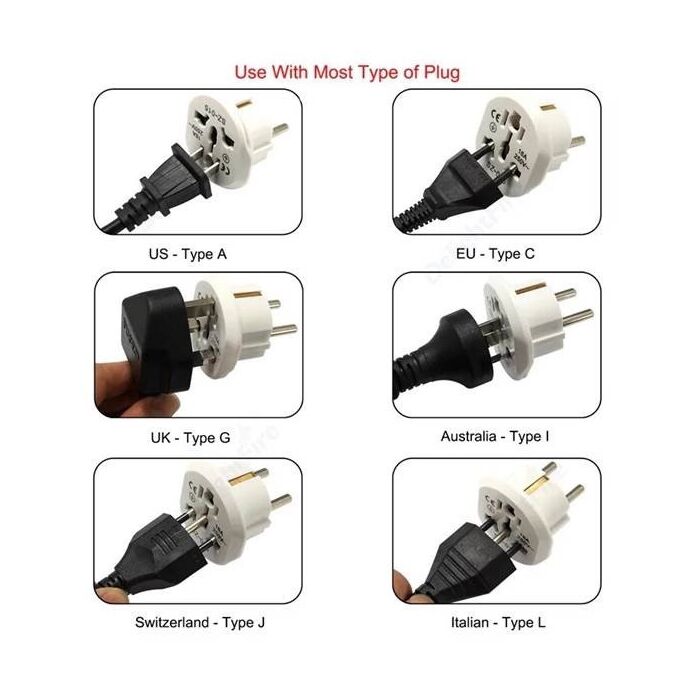 ОсобенностиДля вилок: US - Type A, EU - Type C, UK - Type G, Australia - Type I, Switzerland - Type J, Italian - Type L.