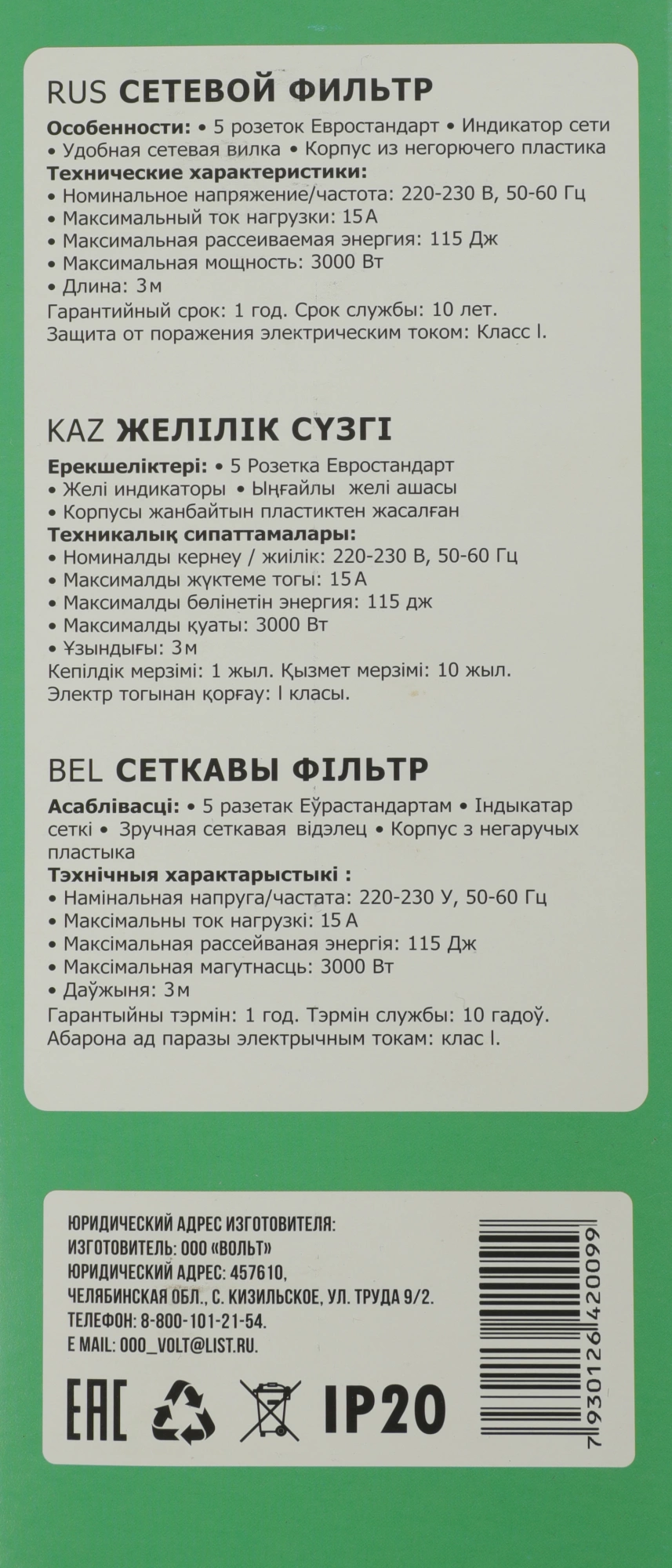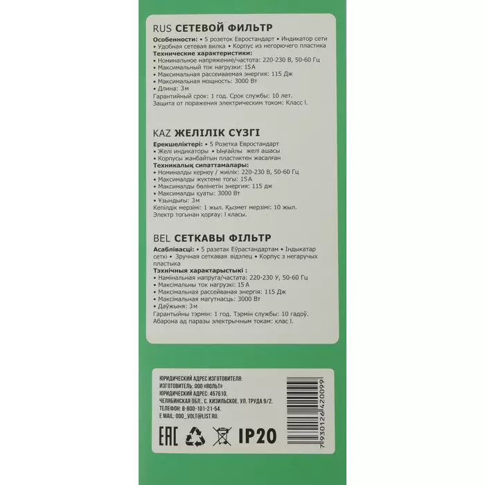 Наличие товара Юнивольт 00-00000406