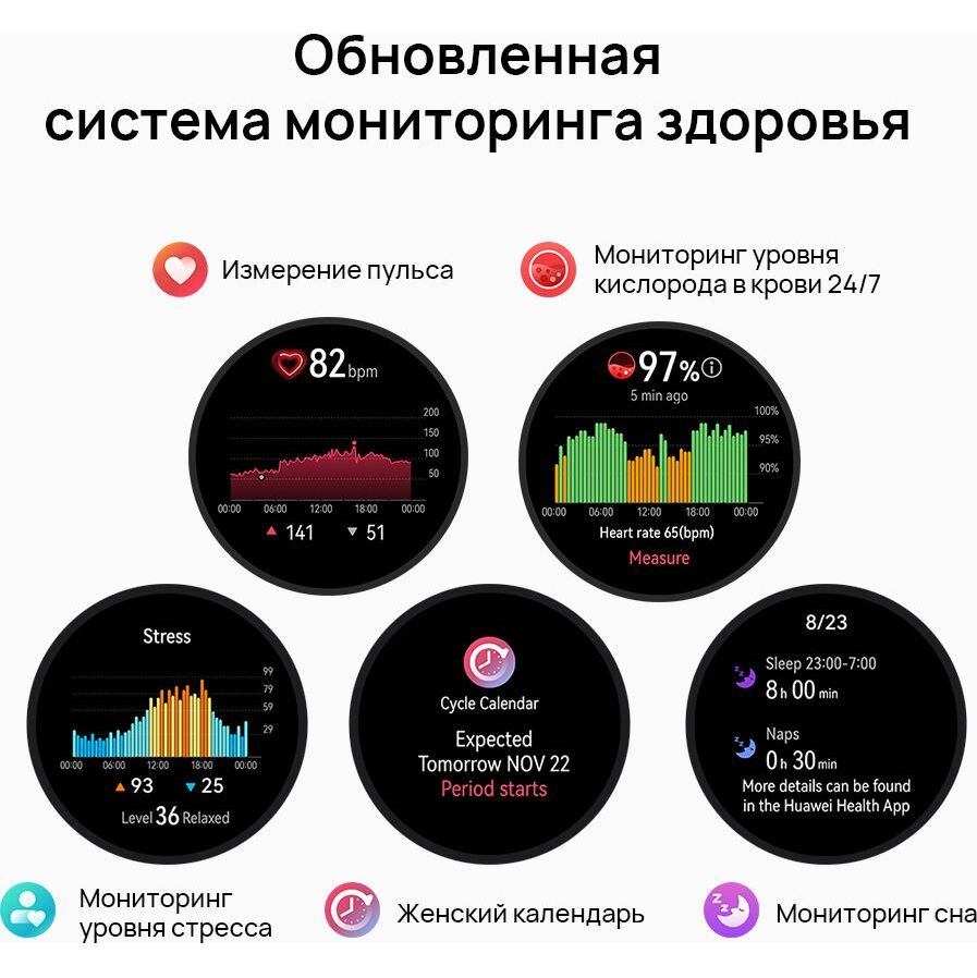 Умные часы HUAWEI с классическим дизайном, длительное время работы батареи, более точное измерение пульса и уровня кислорода в крови, профессиональные режимы тренировок, персонализированные планы тренировок.