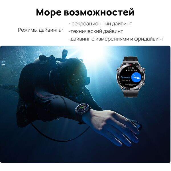 HUAWEI WATCH Ultimate, выполненные из жидкого металла на основе сплава циркония, с безелем из нанокристаллической керамики и циферблатом из сапфирового стекла с AMOLED-экраном LTPO 1,5 дюйма, прочны и износостойки. Смарт-часы способны выдержать погружение на глубину до 100 метров.