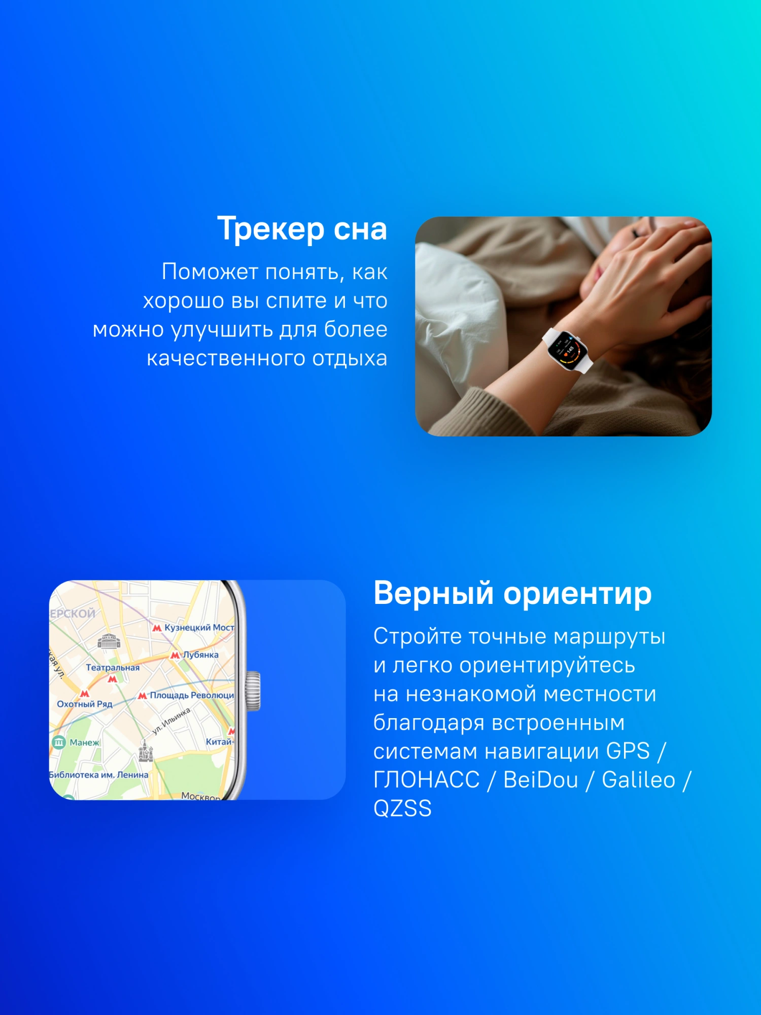 | Список возможностей | Bluetooth звонки, 5-системный GNSS, отслеживание тренировок, сатурация, пульс, сон и давление (окр. ср.), управление камерой, компас |