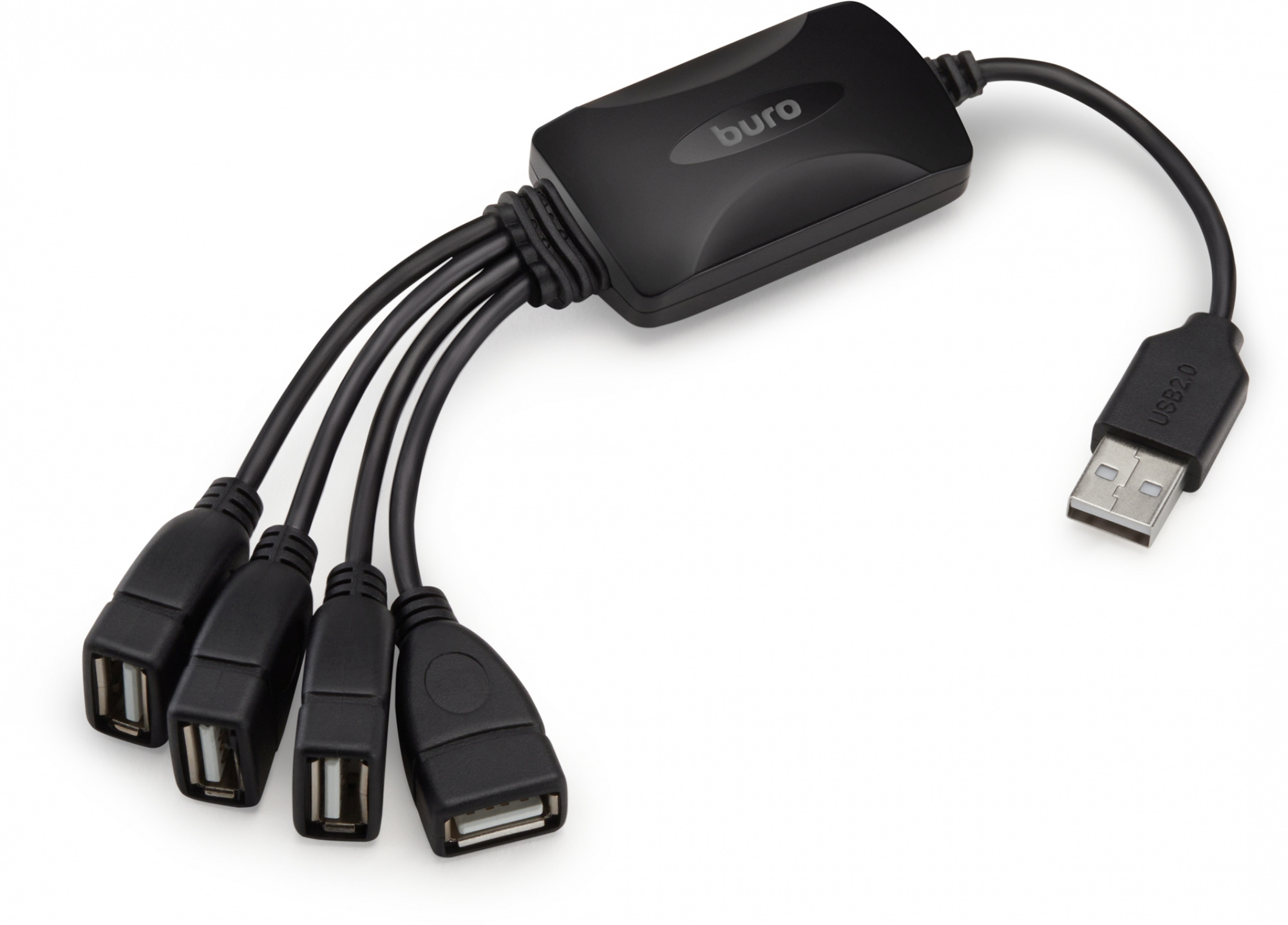 Разветвитель USB 2.0 BURO BU-HUB4-0.3-U2.0-Splitter 4порт. черный