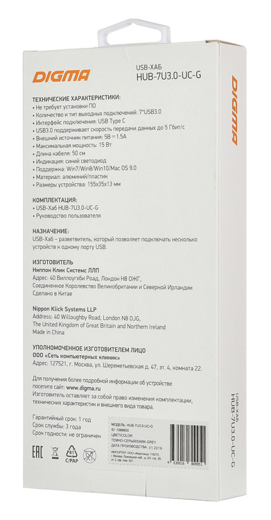 Описание Digma HUB-7U3.0-UC-G