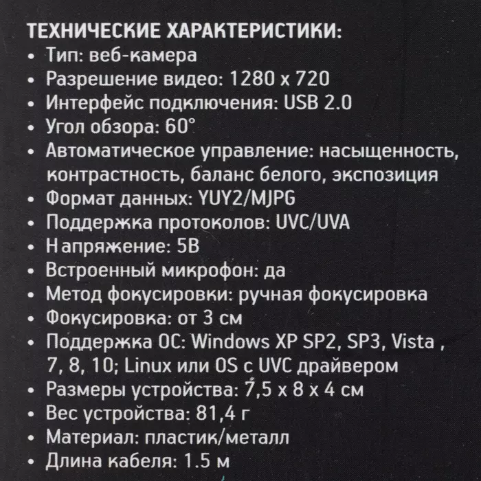 | Формат видеовызовов | MJPG/YUY2 |
