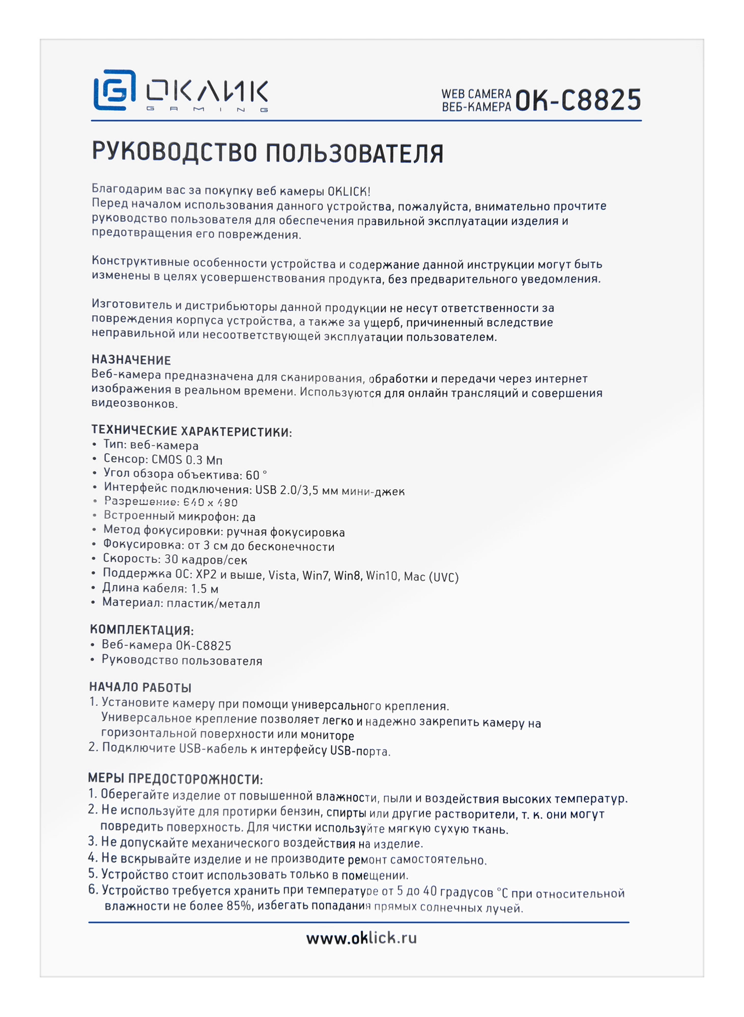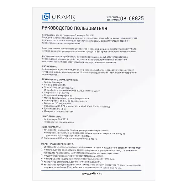 Описание Oklick OK-C8825