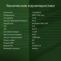 Планшет Digma Pro Eclipse T616 (2.0) 8C RAM8Gb ROM256Gb 11" In-Cell 1920x1200 4G 2Sim Android 14 зеленый 20Mpix 8Mpix BT WiFi microSD 1Tb 8000mAh [TA3E1P02]