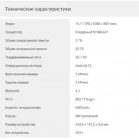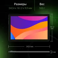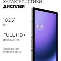 Планшет Kvadra TS11.02-2111-21 (2.4) 8C RAM6Gb ROM128Gb 10.95" IPS 2000x1200 4G 1Sim OS серый 13Mpix 5Mpix BT WiFi microSD 256Gb 9000mAh 8hr [Y23T01PO2413R_4CD2CD]