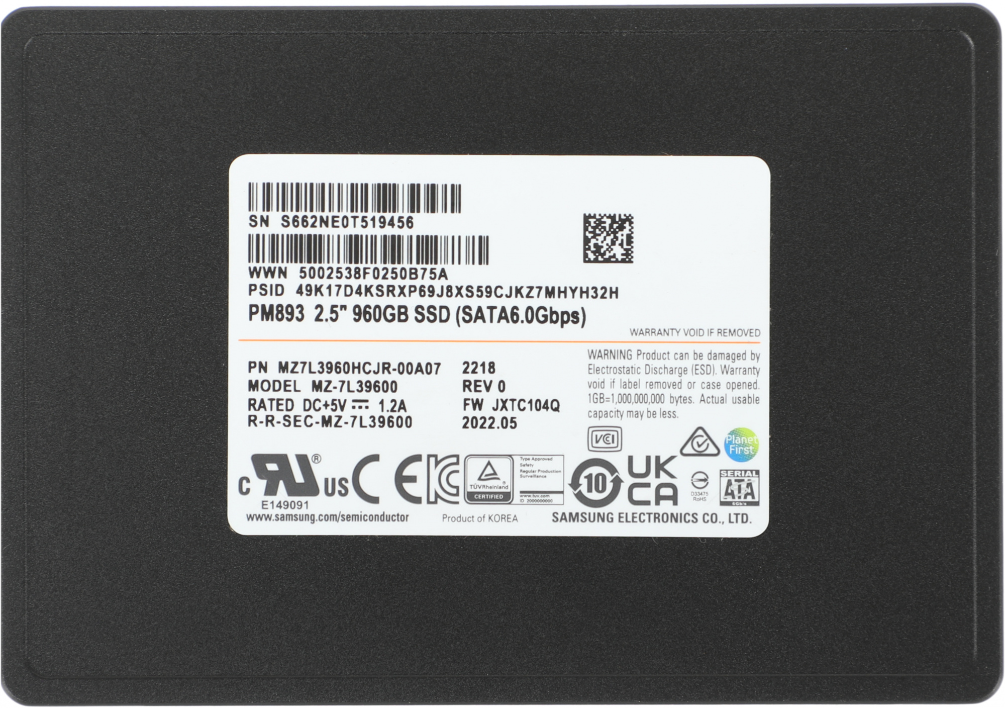 Описание Samsung 960Gb Enterprise PM893 [MZ7L3960HCJR-00A07]