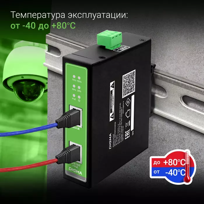 Инжектор стандарта 802.3af/at/bt, питание DC 37-57 вольт.