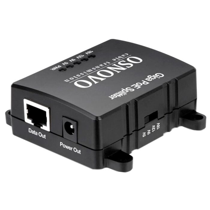 PoE-сплиттер Gigabit Ethernet с функцией выбора напряжения на 5/9/12/18V. Соответствует стандартам PoE IEEE 802.3af/at. Порты: вх. - RJ45(10/100/1000 Base-T, IEEE 802.3af/at), вых. - RJ45(10/100/1000 Base-T)/штекер (DC5V(3А), 9V(2,5A), 12V(2A), 18V(1,6A). Переключатель выходного напряжения.