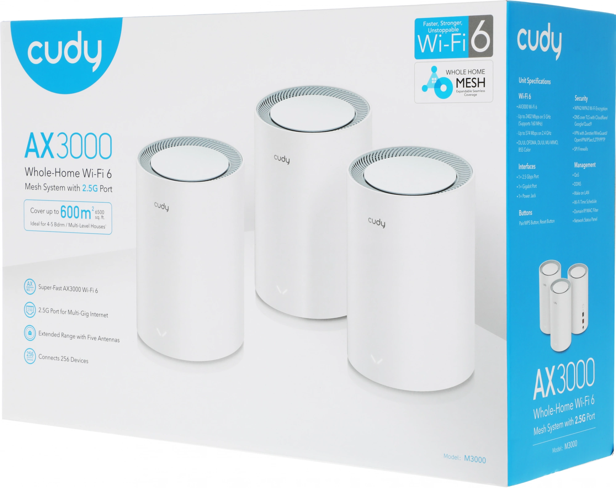 | Комплектация | AX3000 Wi-Fi Mesh роутер - 3 шт., адаптер питания, RJ45 Ethernet кабель, руководство быстрой установки. |