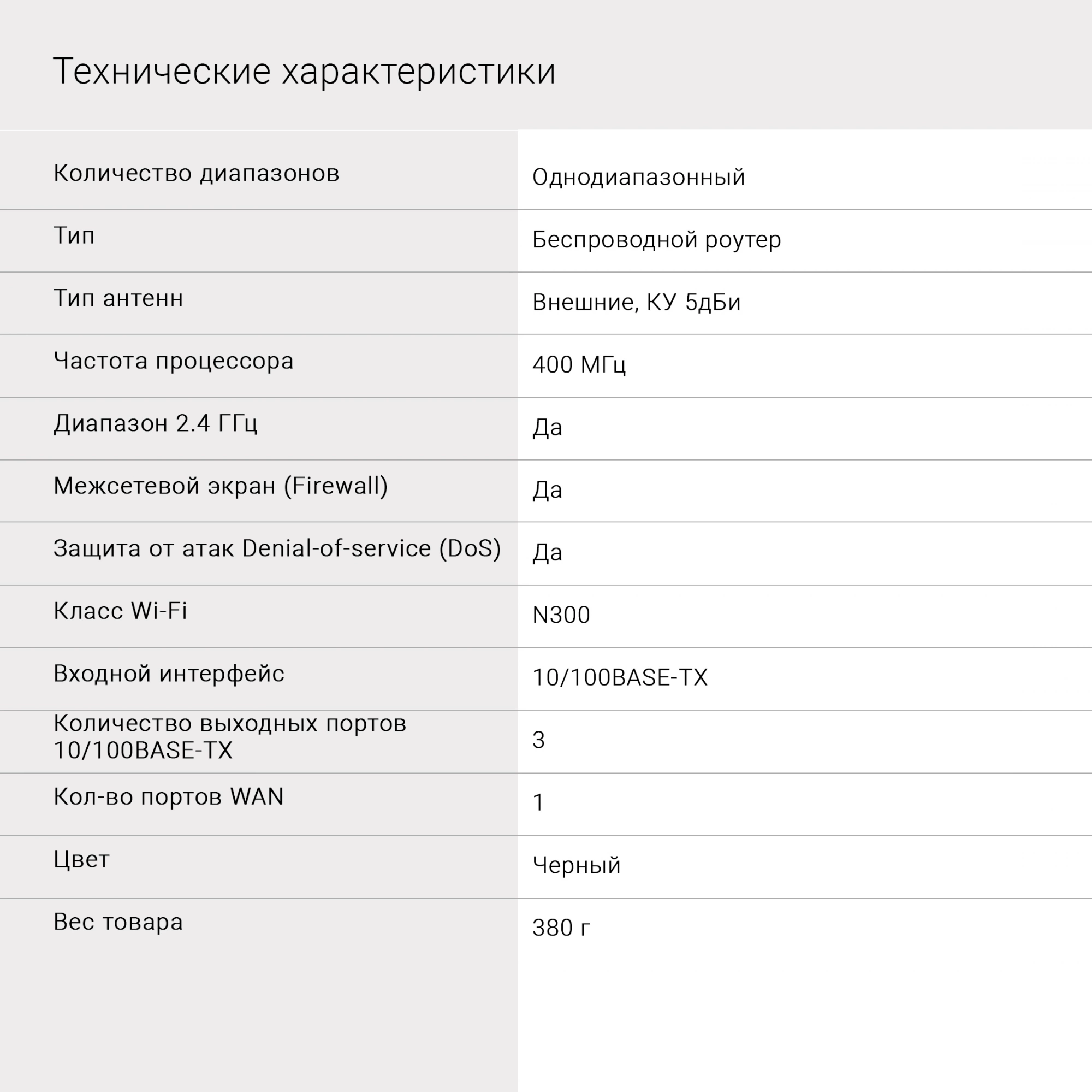 | Максимальная скорость по частоте 2.4 ГГц | 300 Мбит/с |
