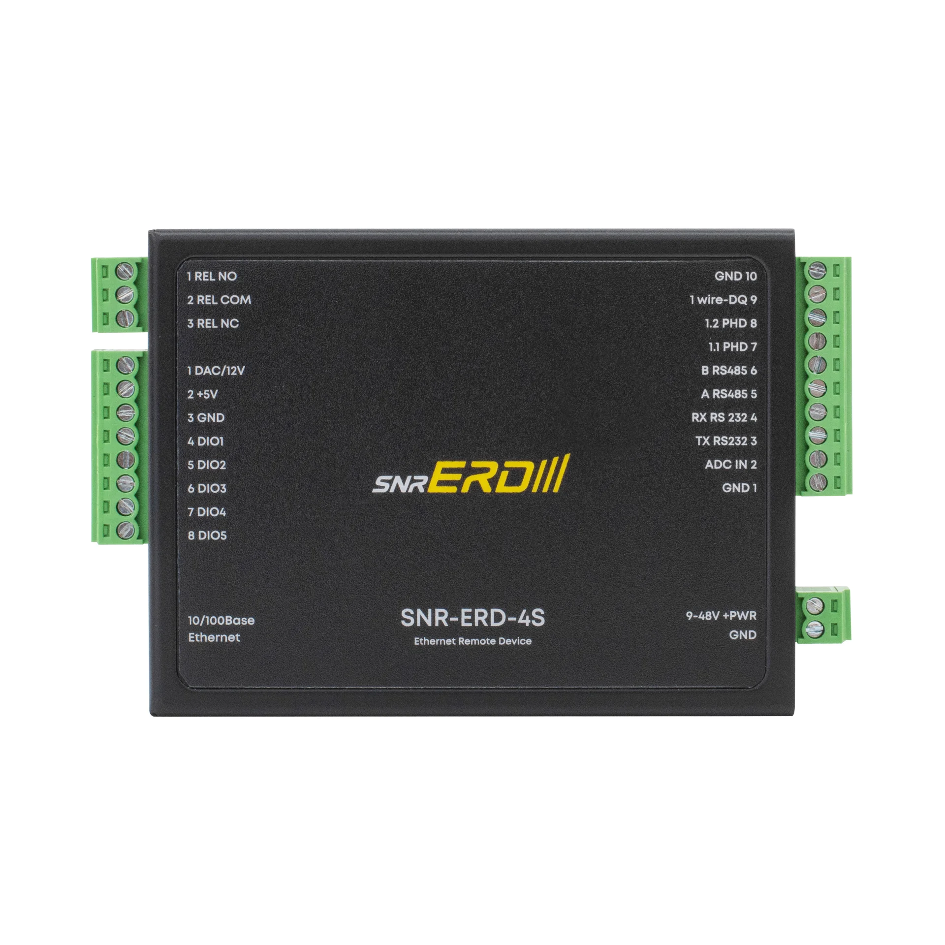 SNR-ERD-4s позволяет управлять подключёнными устройствами дистанционно через Web-интерфейс или по сетевым протоколам. Поддерживаются основные сетевые функции и возможность интеграции с системами удалённого мониторинга.