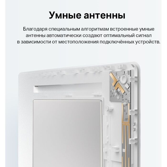 Два диапазона Wi-Fi — до 574 Мбит/с на 2,4 ГГц, до 2402 Мбит/с на 5 ГГц. Умные антенны. Включение (выключение) Wi-Fi. Управление доступом. Управление индикаторами. Работа по расписанию. Регулировка мощности Wi-Fi. EasyMesh.