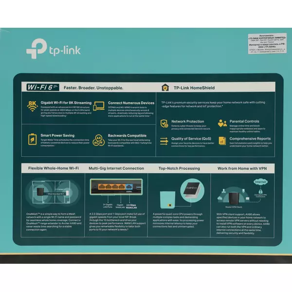 | Особенности портов | • Порт WAN/LAN 2,5 Гбит/с• Гигабитный порт WAN/LAN• Гигабитный порт LAN (3 шт.) |