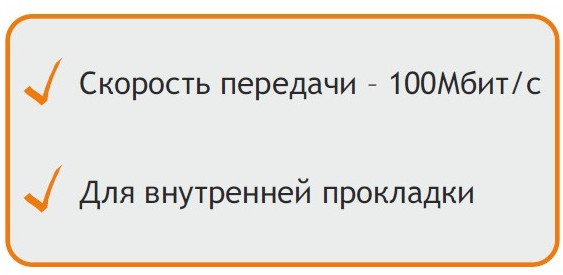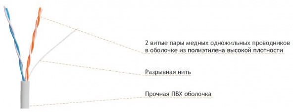 Неэкранированные 2-парные кабели категории 5 предназначены для прокладки внутри помещения. Медные одножильные проводники обеспечивают пропускную способность 100 Мбит/с. Оболочка серого цвета из поливинилхлорида обладает хорошей прочностью на растяжение и изгибы, и высокое сопротивление разрыву. Данные кабели имеют одинаковые характеристики передачи данных, но разную длину: 305 и 500 метров.